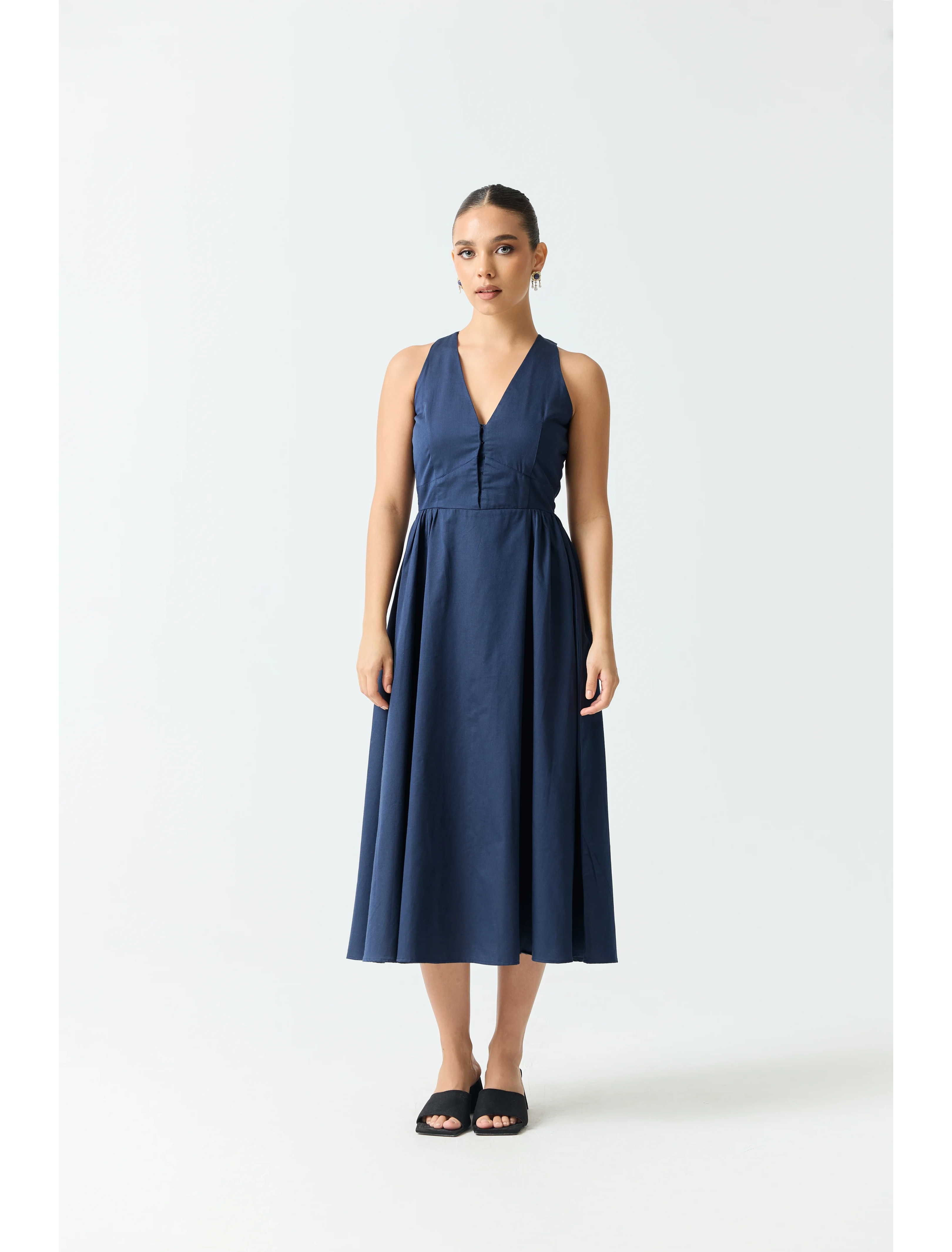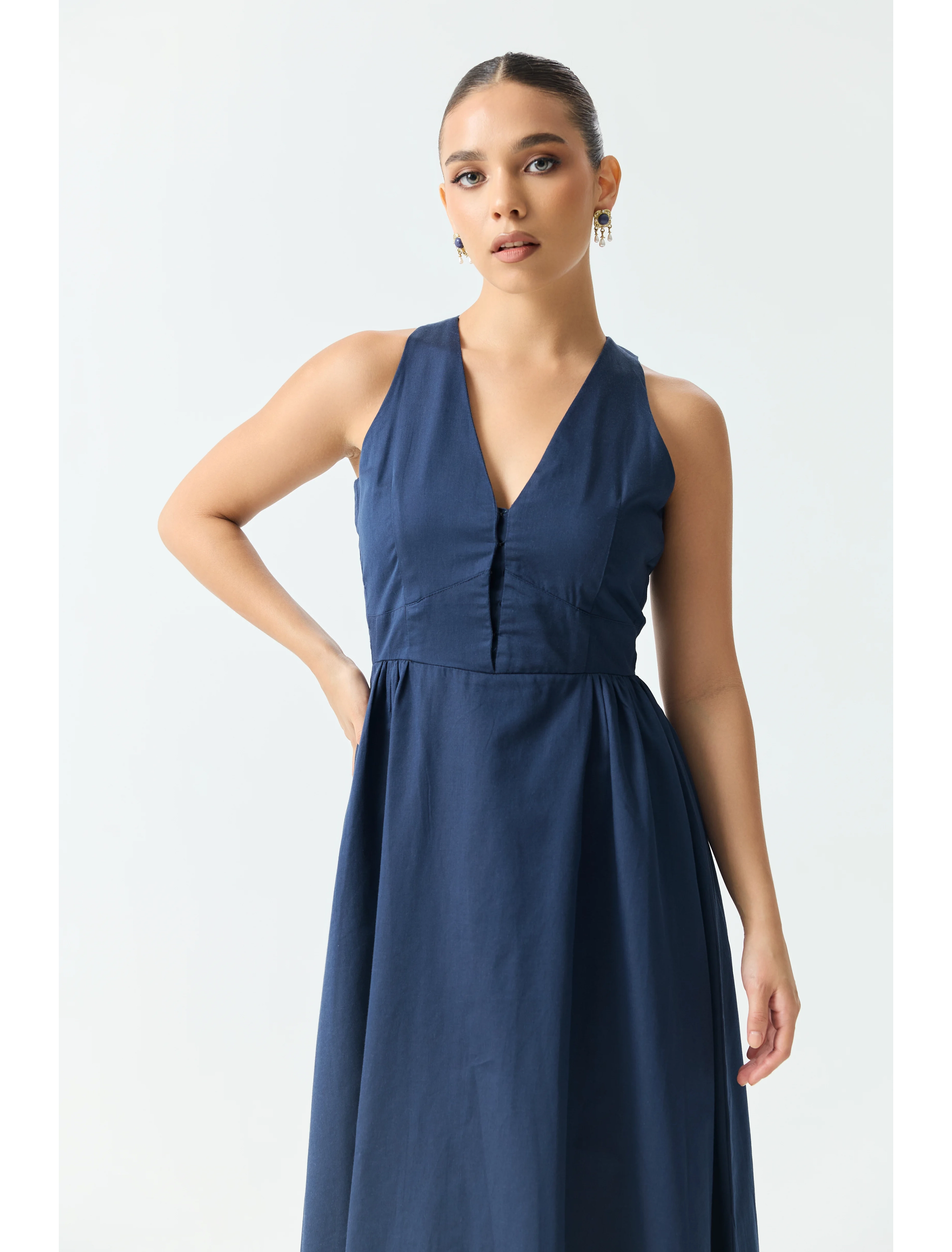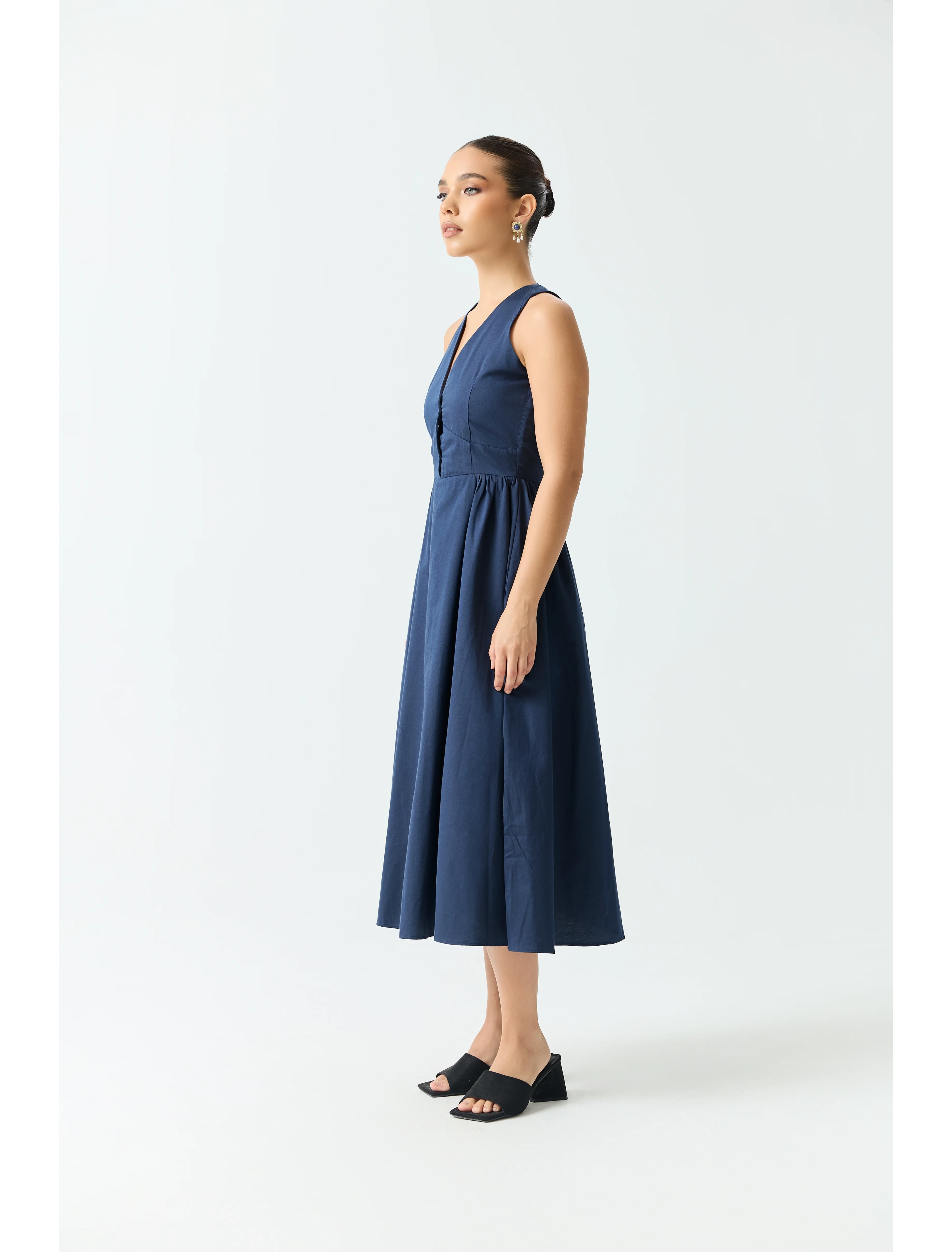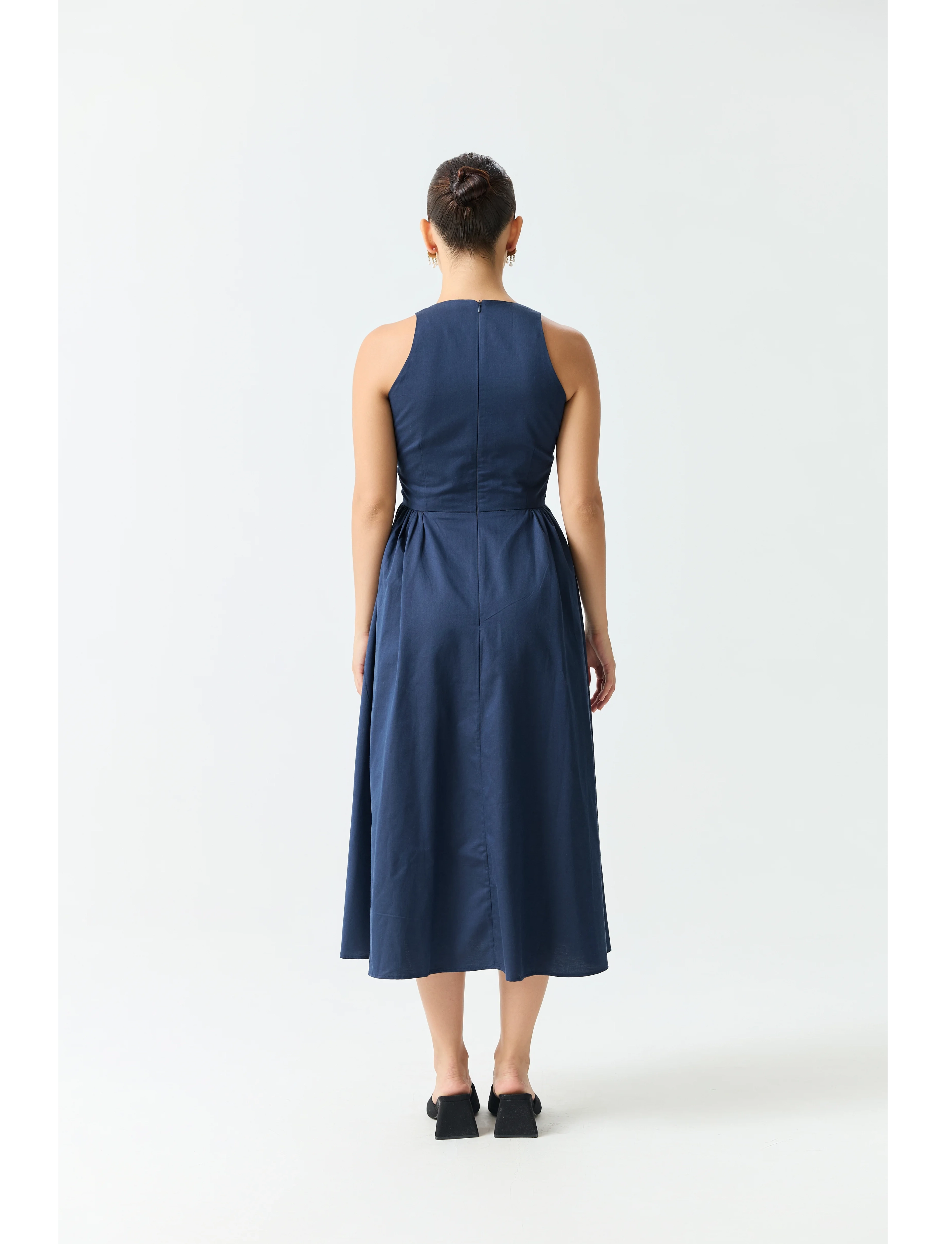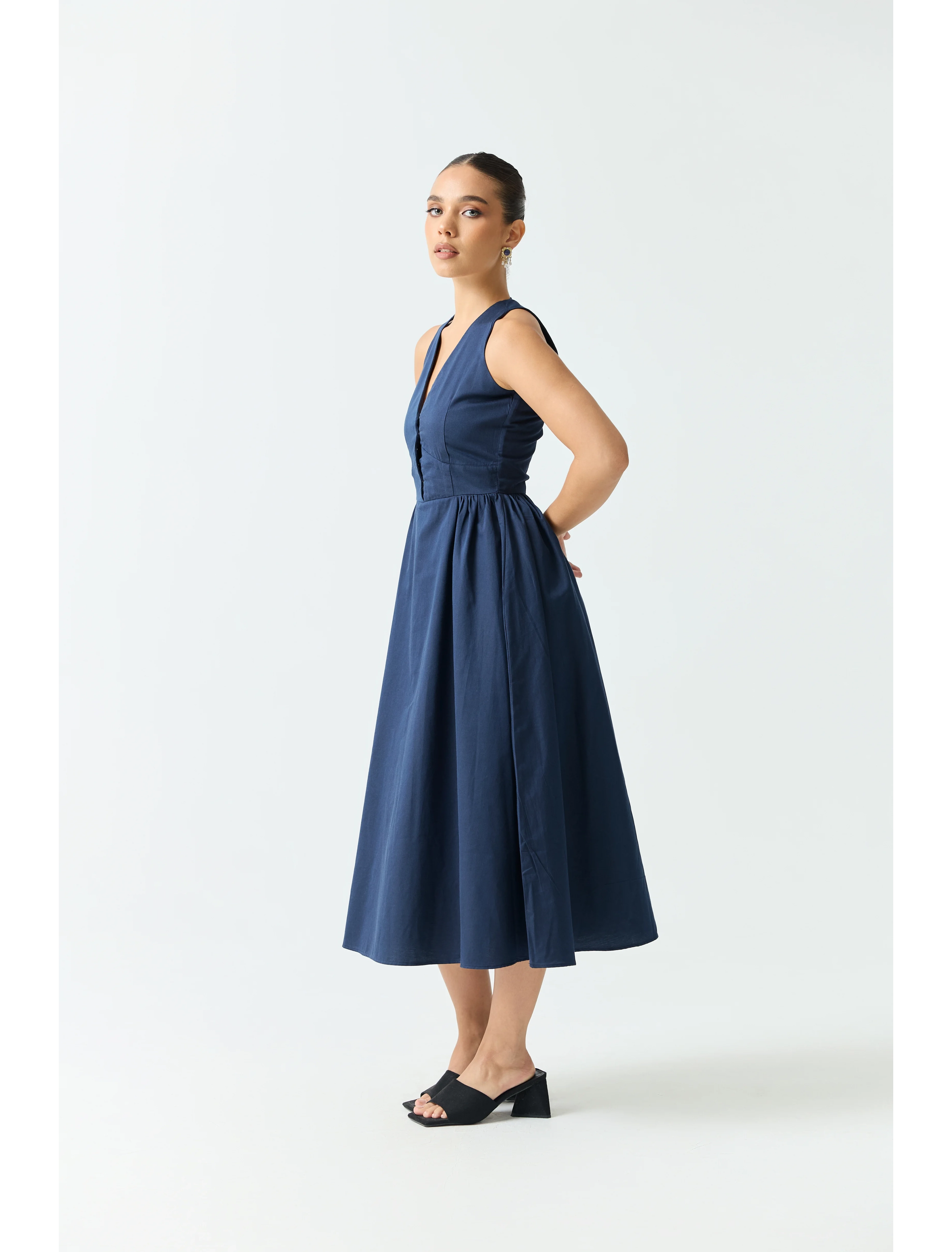 Midi Dress with Side Gathered Detail