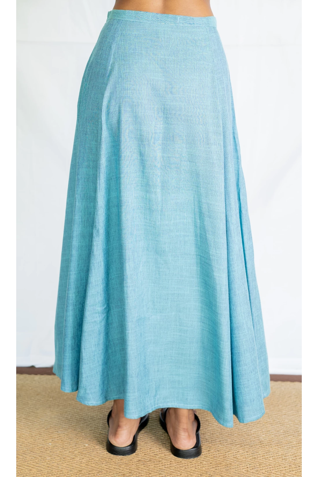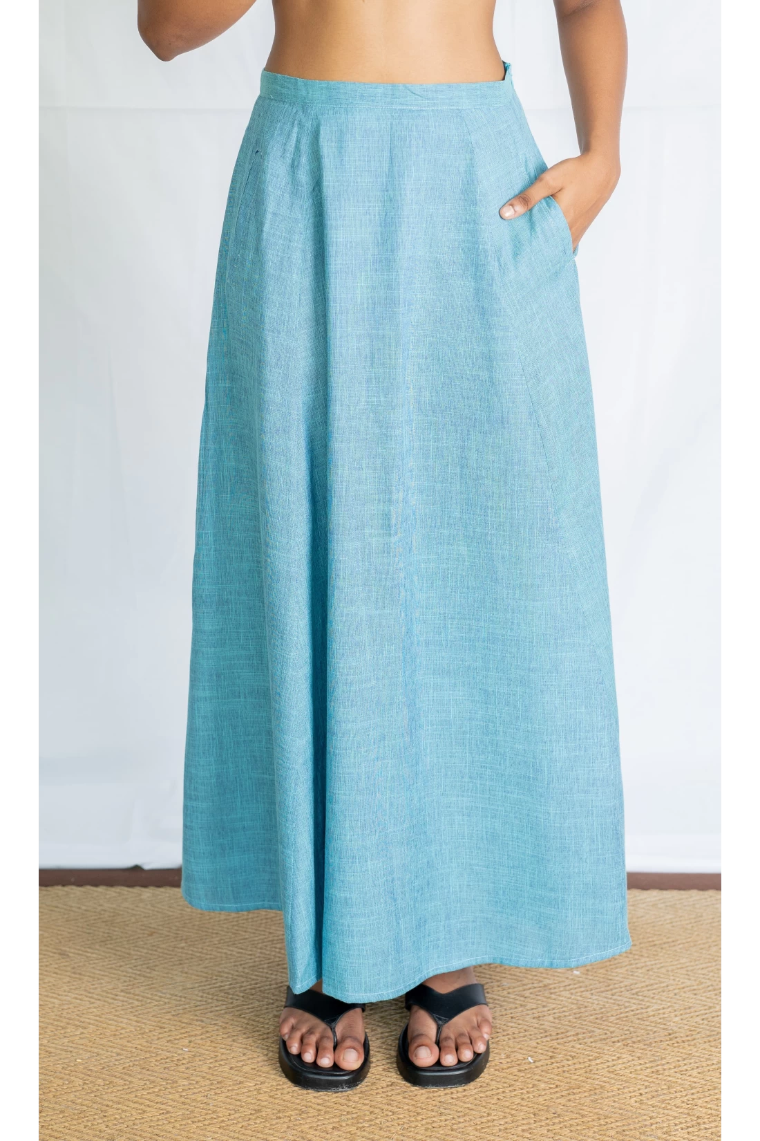 • Maxi panelled skirt with waistband, side zip closure, and welt pockets